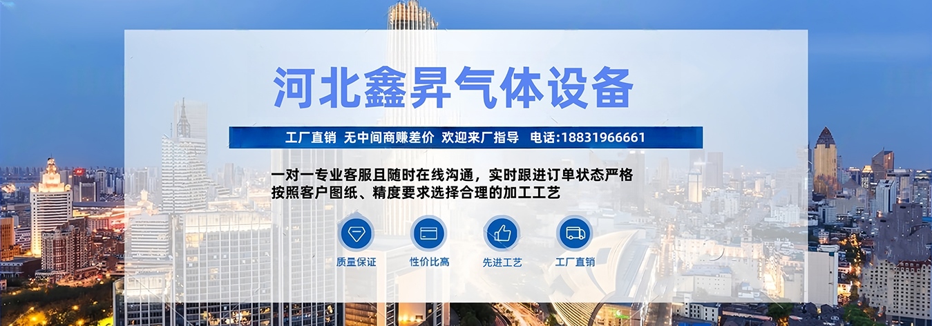 河北鑫昇氣體設備有限公司是一家國內專業從事各種氣體設備研發、制造,銷售與服務為一體的企業。主要產品有氣化撬、氣化站、氣體匯流排、低溫液體泵、CNG瓶組、CNG調壓箱、CNG減壓撬、天然氣調壓柜、空溫式氣化器、水浴式汽化器等,業務覆蓋河北、河南、湖北、陜西、黑龍江、新疆、內蒙等地。